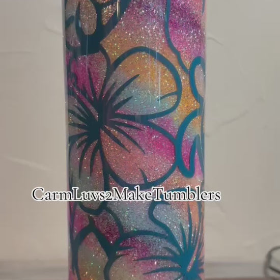 20 ox double walled stainless steel tumbler with multicolored glitters with vinyl cut overlay.
