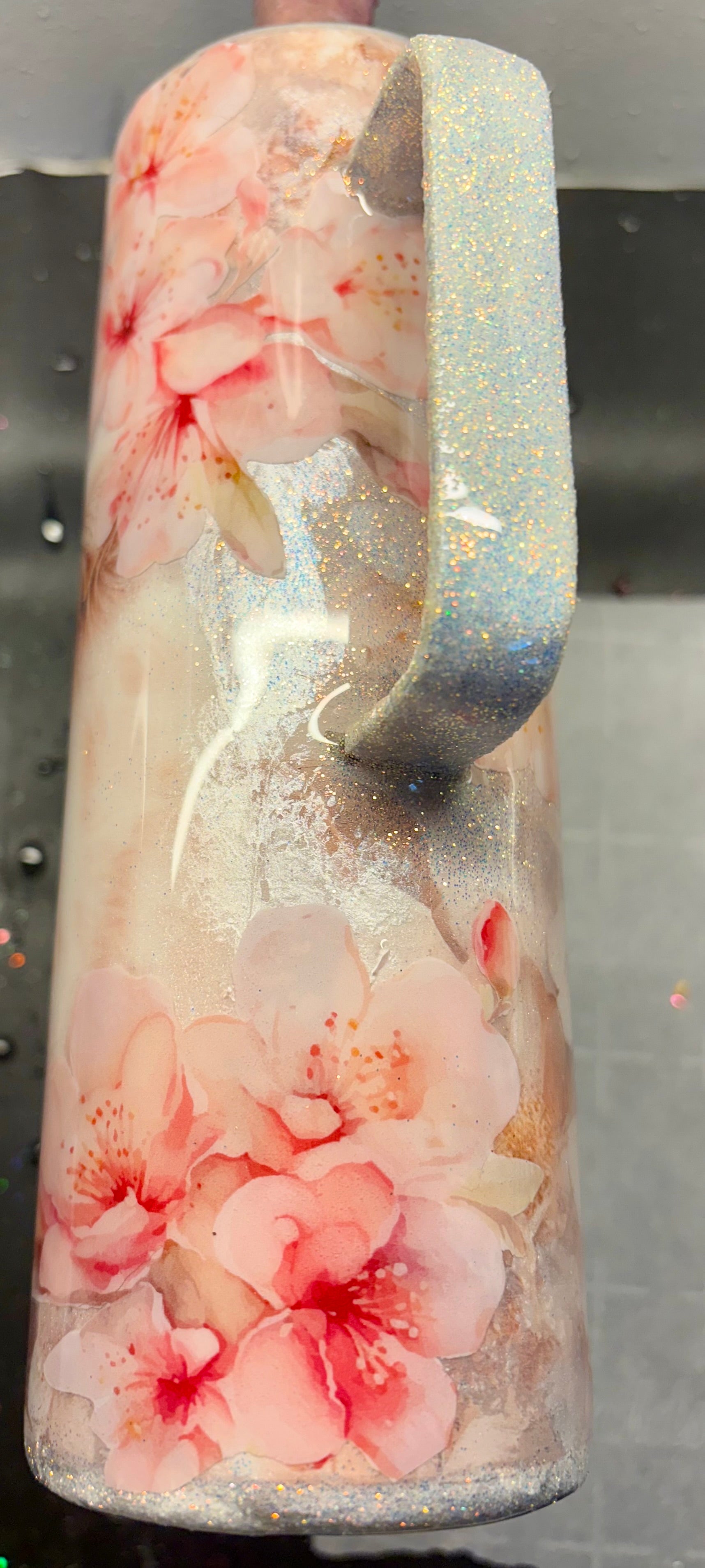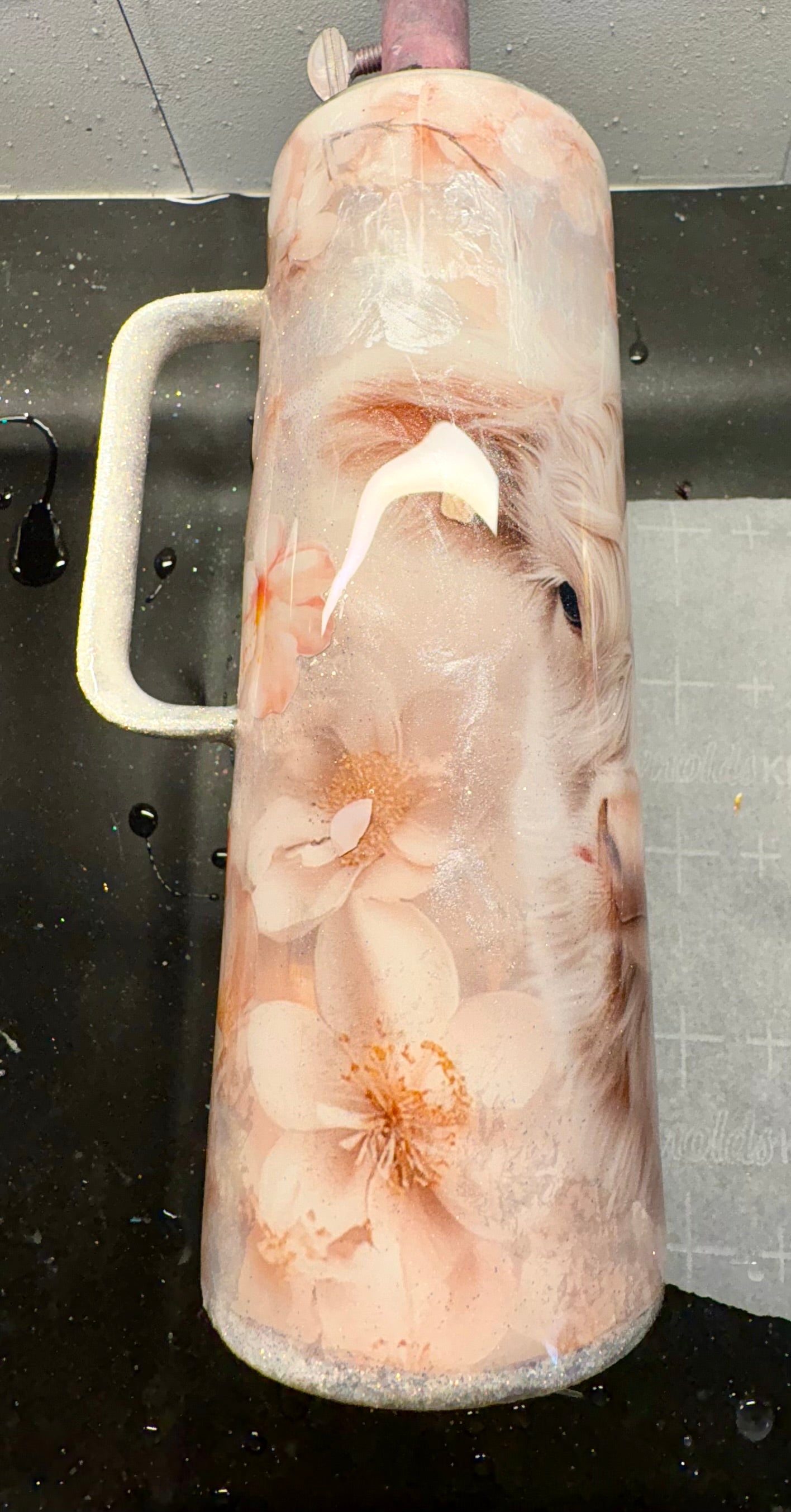 20 oz stainless steel tumbler with handle and adorable highland cow vinyl print with flowers