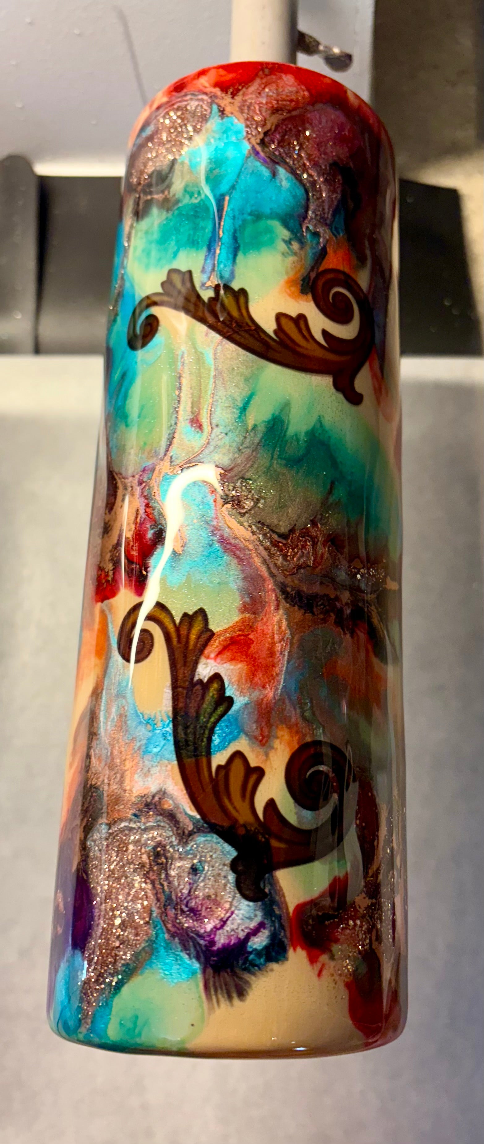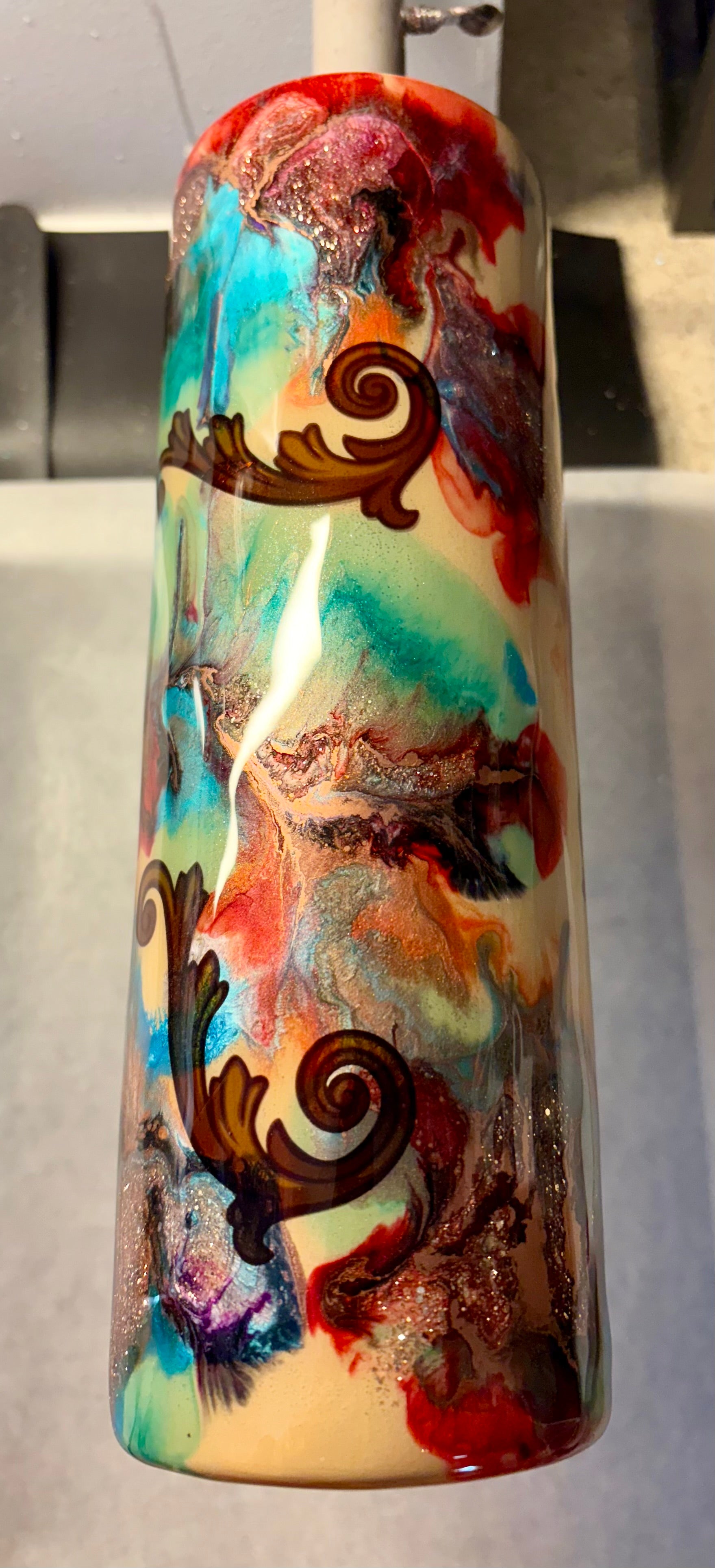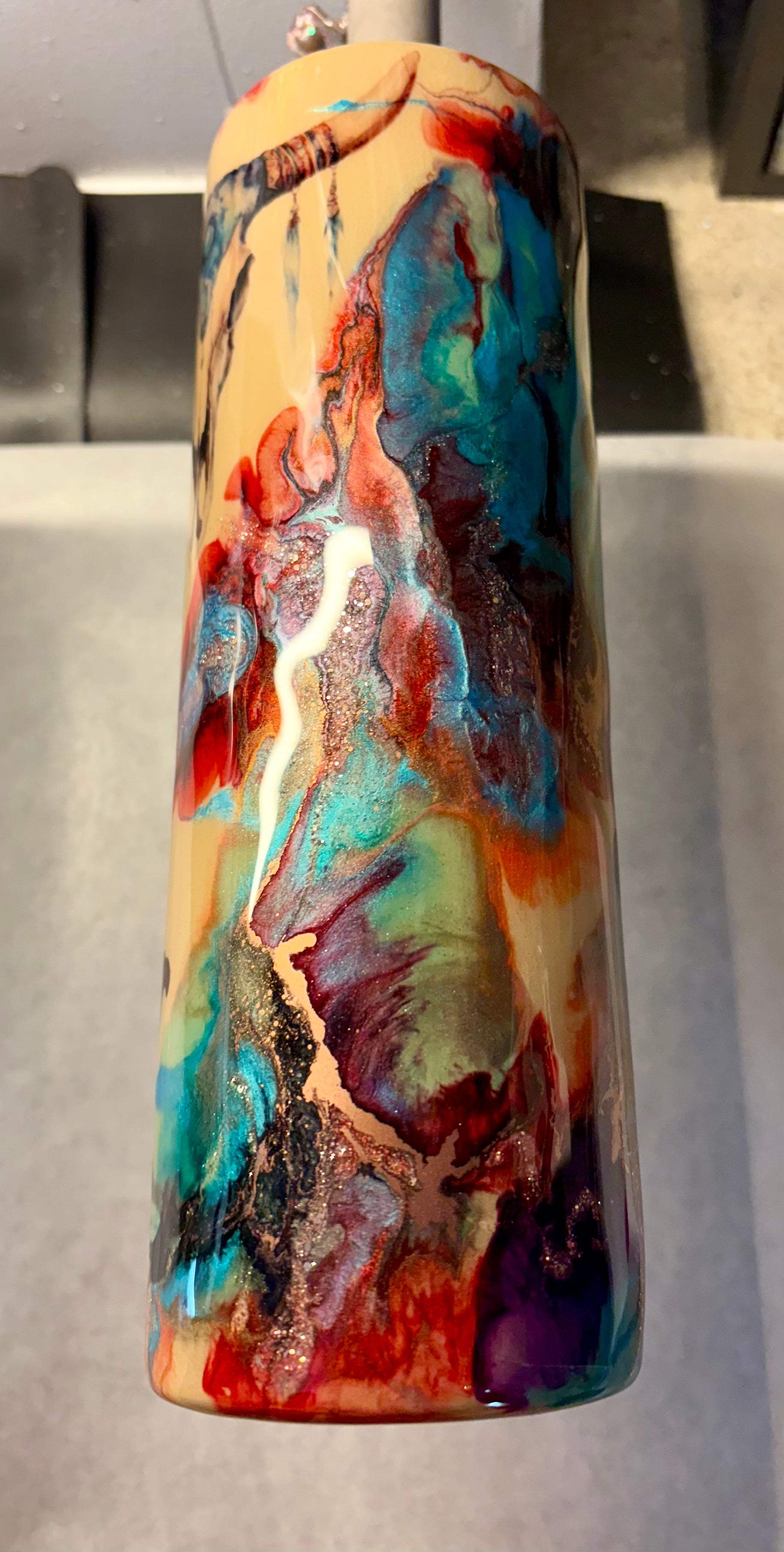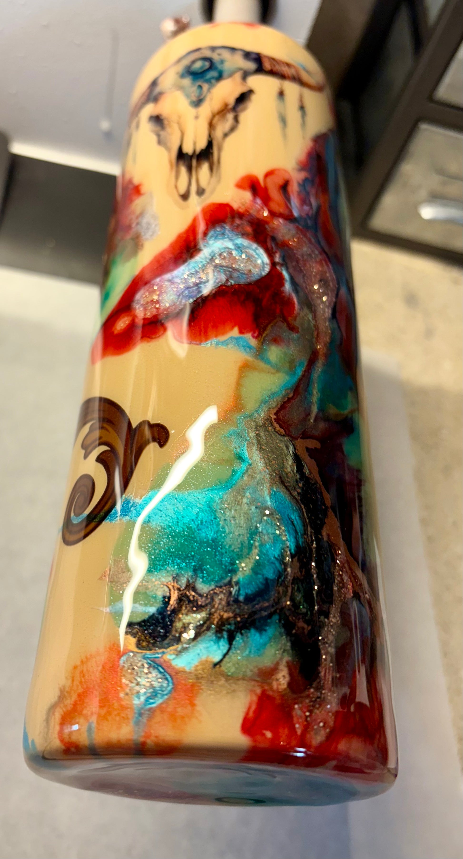30 oz stainless steel double walled dip skinny tumbler with western vibe colors and decals