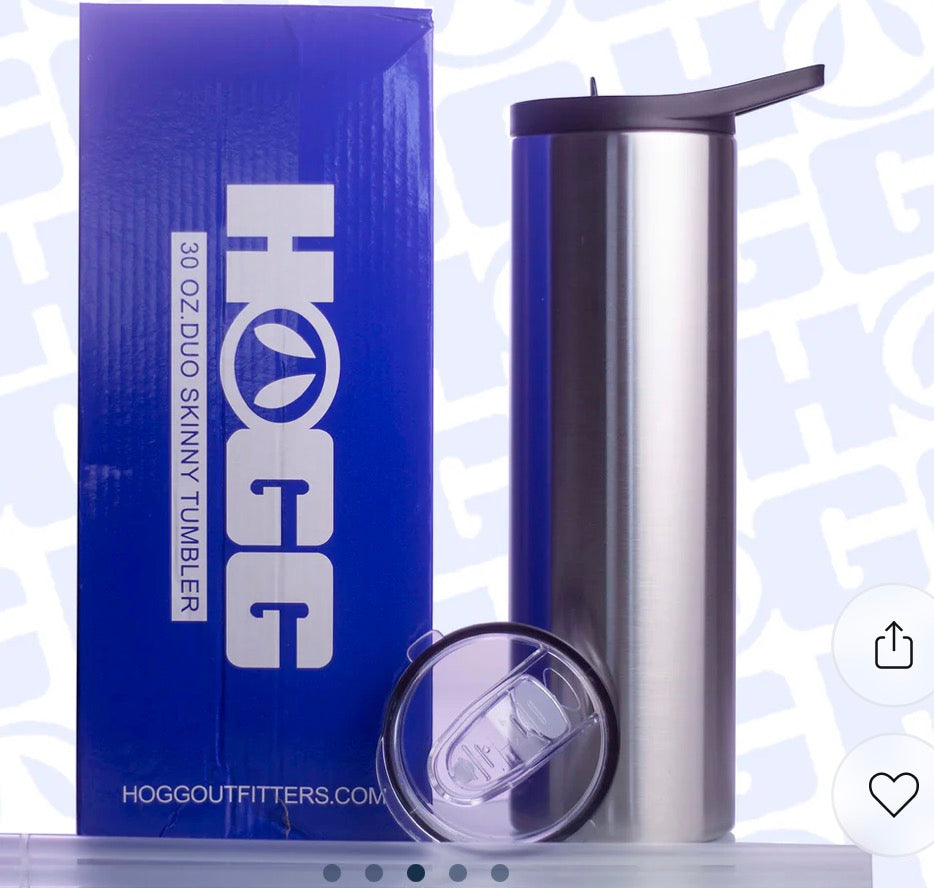 30 oz double walled stainless steel duo skinny. Cones with two different lids.